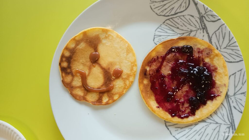 Lors de cet atelier, ils ont préparé la pâte, l’ont faite cuire et, en un tour de main, l’ont retournée avec fierté. Crêpes au caramel, à la confiture de fraises et aussi aux myrtilles grâce à Emmanuel : il y en avait pour tous les goûts, et les enfants se sont régalés !